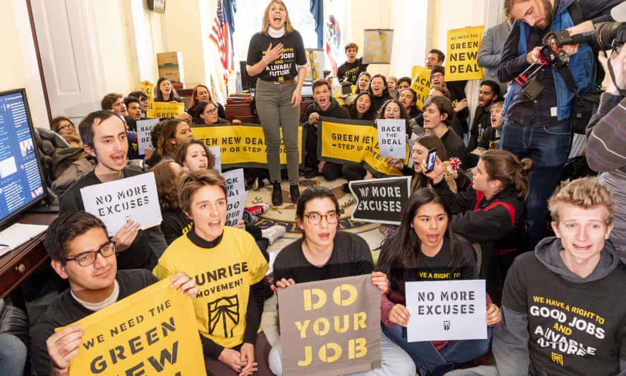 The Sunrise Movement’s Green New Deal would eliminate greenhouse gas emissions from electricity, transportation, manufacturing, agriculture as well as other sectors within Decade. It would also try to get 100% electrical power and features a job guarantee program “to assure cash wage job to each one who wants one”. It’d aim to “mitigate deeply entrenched racial, regional and gender-based inequalities in income and wealth”.